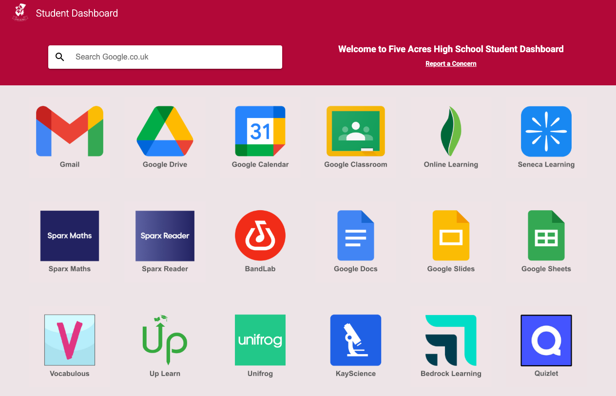 Students can access their homework platforms through the student dashboard, available via their Google accounts.